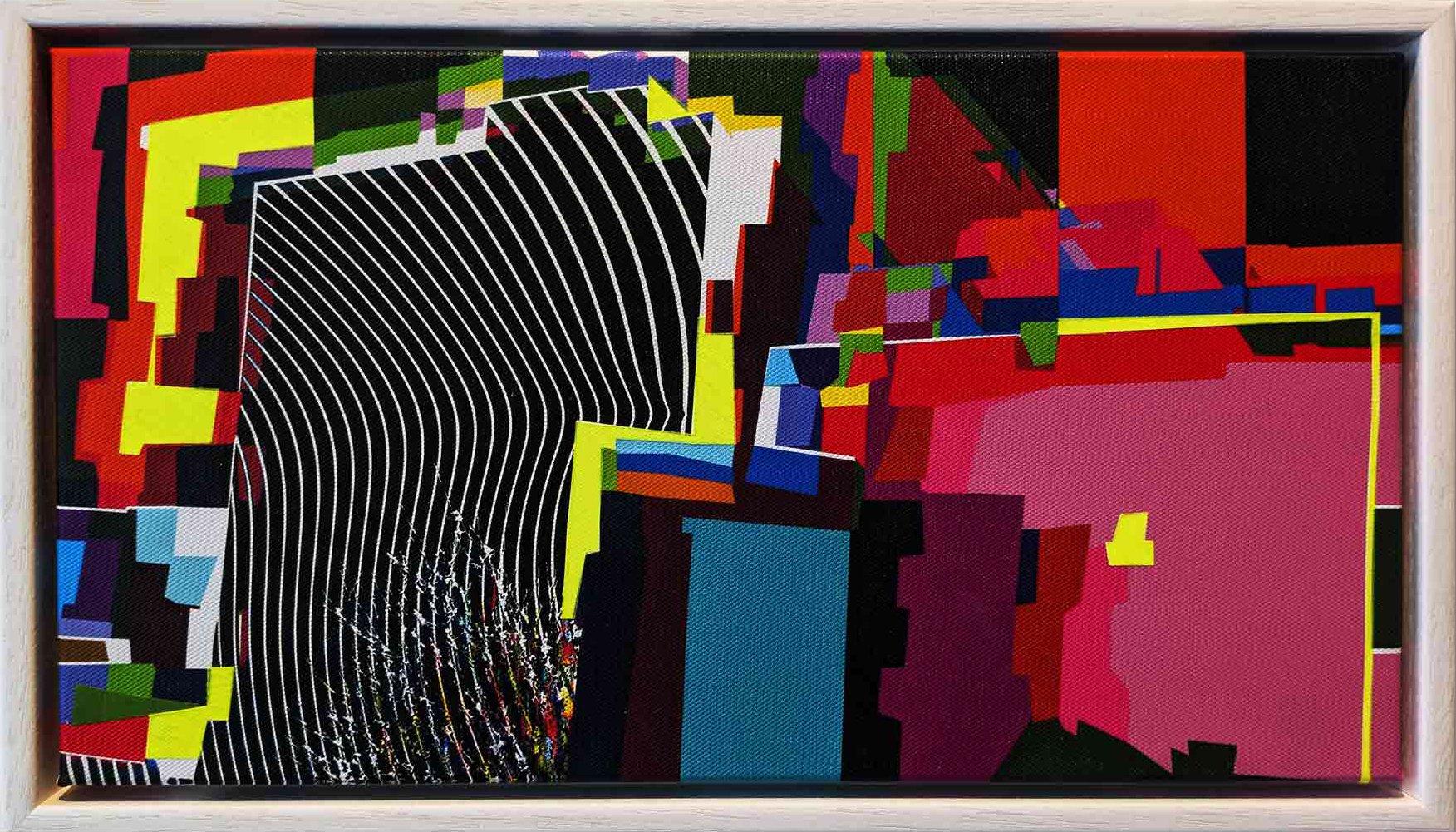 Blockhouse Blitz is a unique framed digital artwork by Dex Hannon, inspired by the historic Blockhouse that guards the entrance to Blyth Port. This work began as a frame from Hannon’s film Blythian Memes before being transformed through digital reworking and hand-painted detail.