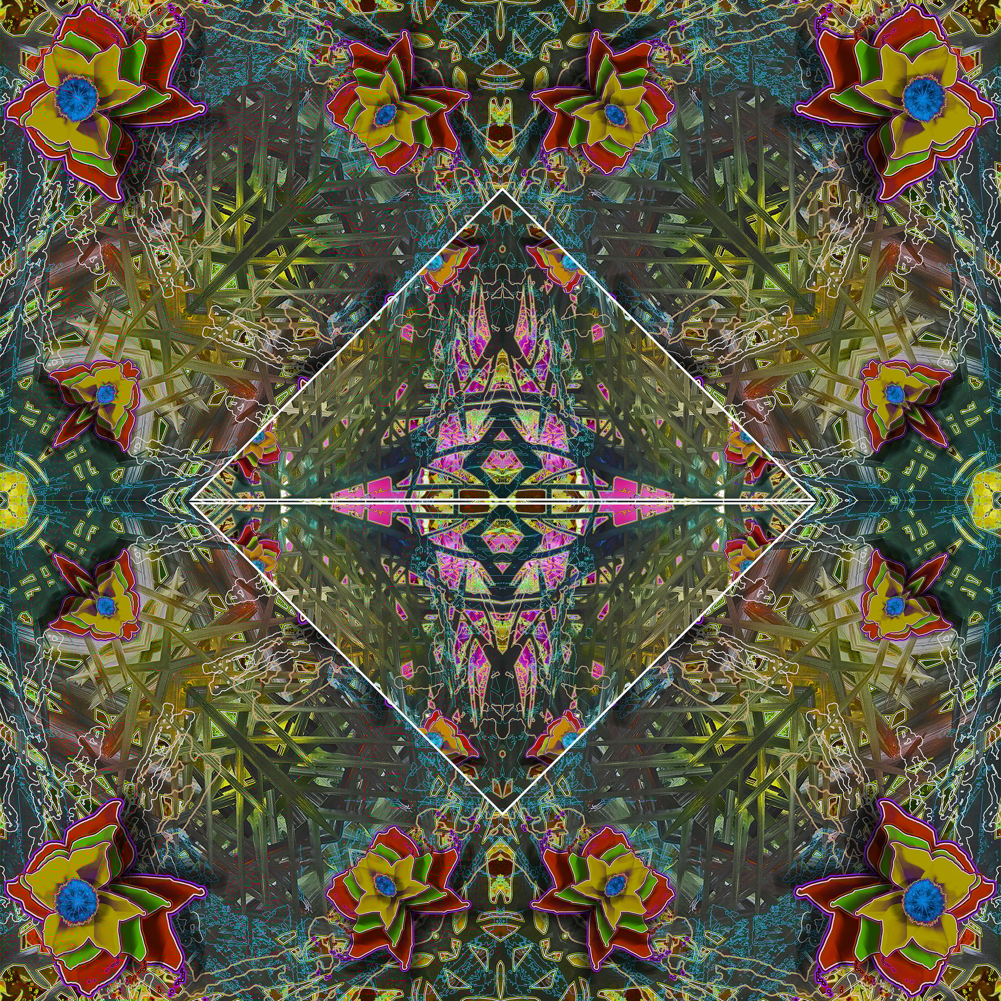Hannon’s process begins with a single image, gradually layered and refined until the composition reaches a point of equilibrium. The result is both contemplative and dynamic, a dialogue between chaos and calm.